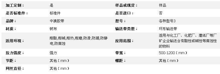 產品特性:選用棉帆布、尼龍帆布或聚脂帆布作帶芯,覆蓋膠采用天然橡膠與順丁橡膠的并用膠、具有彈性高,耐沖擊、耐寒性等特點,能在零下40℃的環境下正常使用。  技術指標: